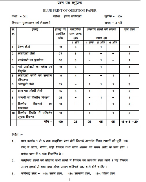 Mp Board Class 12 Book Keeping And Accountancy Blueprint And Model Paper   - Mp board 12th exam dates expected to be announce soon.