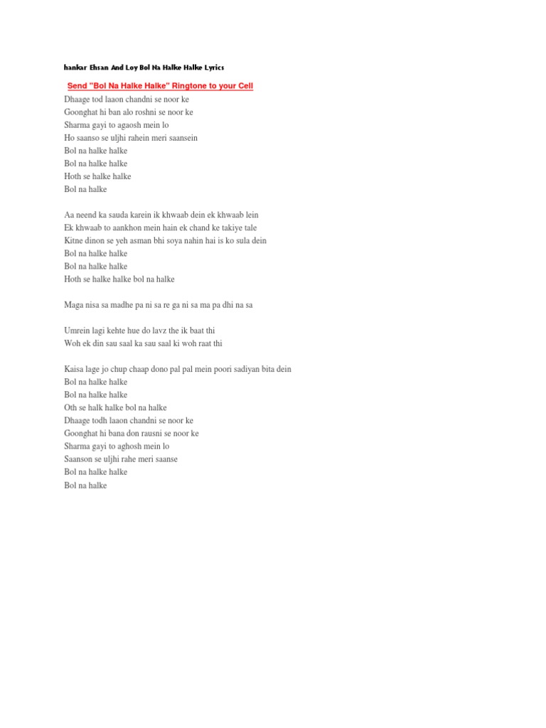 Bol Na Halke Halke Free Download - Read or print original bol na halke halke lyrics 2020 updated!