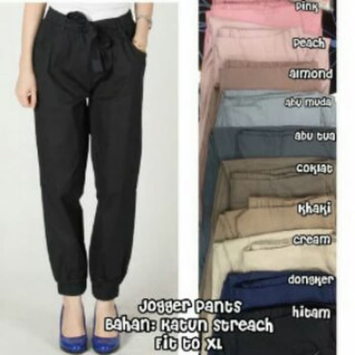 Celana Jogger Hitam Polos Wanita : Celana jogger pada dasarnya menyerupai celana olahraga, tetapi lebih serbaguna dan trendi. Celana Jogger Hitam Polos Wanita : Celana polos ini memiliki tali pinggang yang bisa diserut sesuai ukuran.