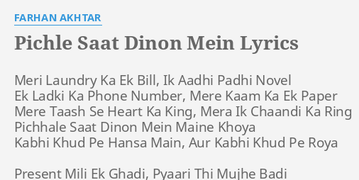 Pichle Saat Dinon Mein Lyrics In English - Pichle saat dinon mein (rock on ! Pichle Saat Dinon Mein Lyrics In English : Pichle saat dinon mein movie:
