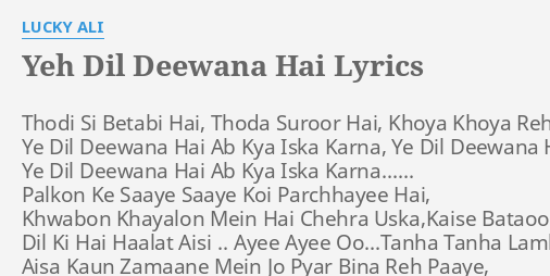Yeh Dil Deewana Deewana Hai Ye Dil Lyrics / Ye dil deewana, deewana hai ye dil. Yeh Dil Deewana Deewana Hai Ye Dil Lyrics - Sonu nigam, hema sardesai & shankar mahadevan music director song lyrics :